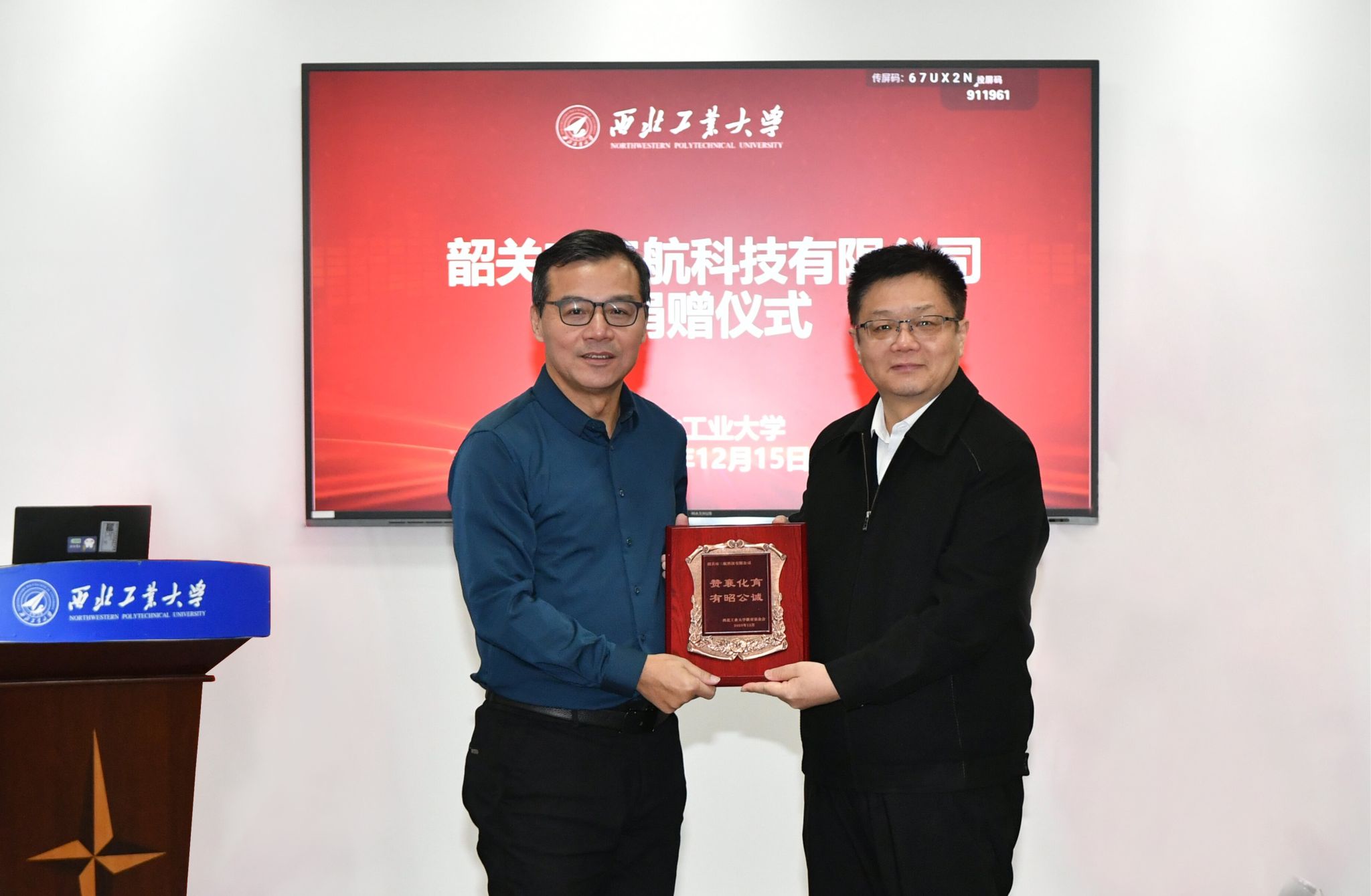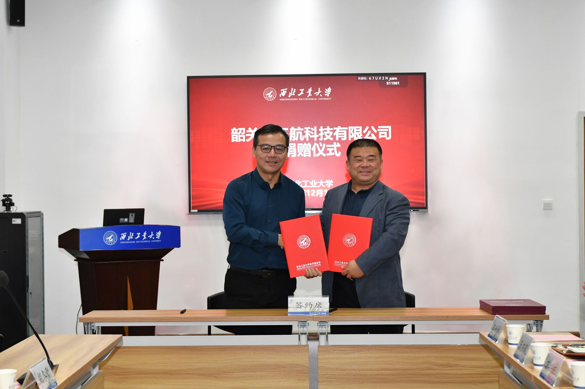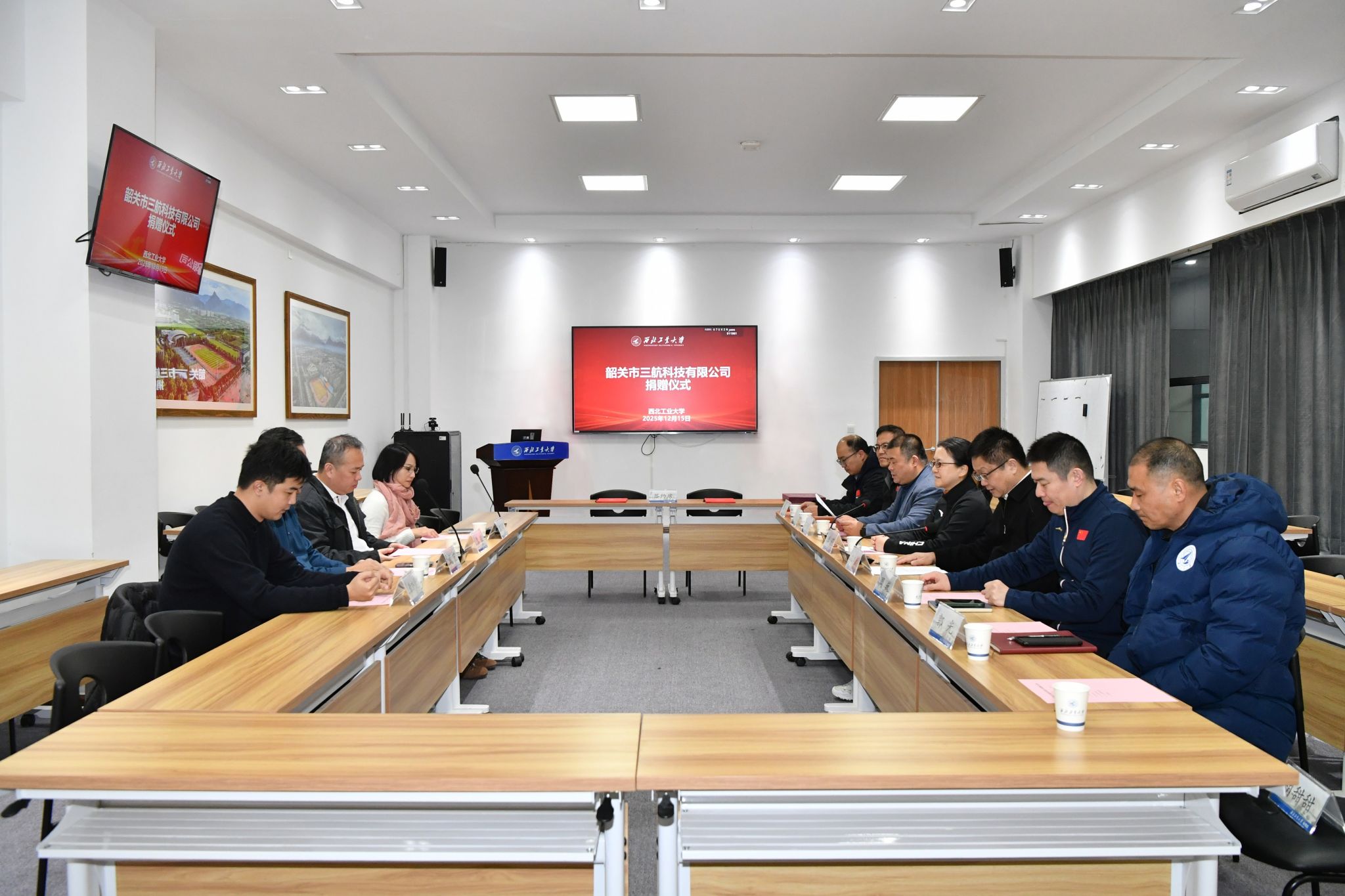 12月15日,广东省韶关市三航科技有限公司(以下简称三航公司)向西北工业大学捐赠签约仪式在友谊校区举行。三航公司总经理、西工大材料学院1986级本科校友刘宏,广东省云浮市郁南县创兴产业投资集团有限公司董事长黎征;西北工业大学校长助理、教育基金会理事长王宇波,体育部、对外联络办公室等单位负责人出席仪式。