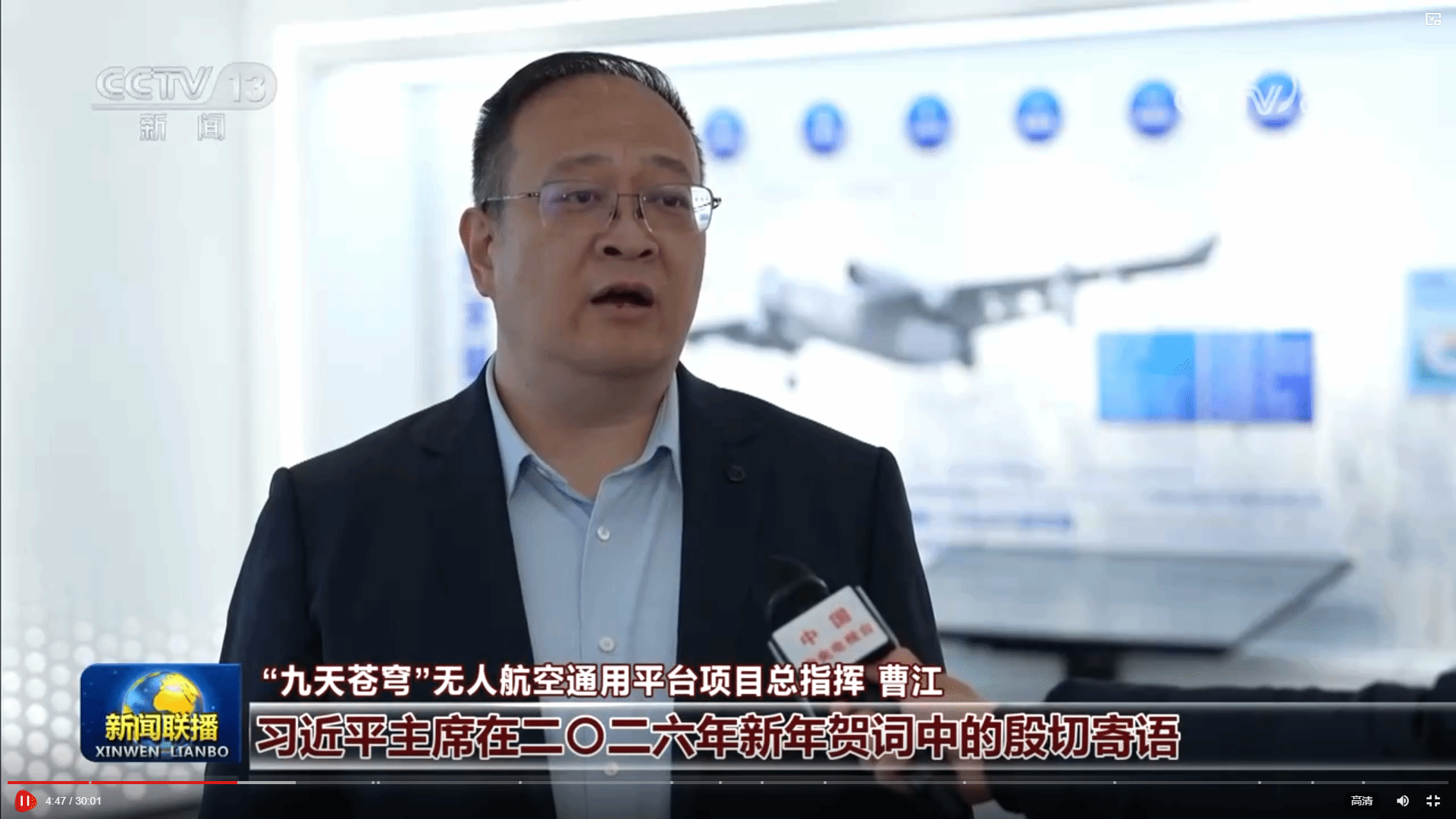 “山海寻梦,不觉其远;前路迢迢,阔步而行。”1月2日晚,陕西无人装备科技有限责任公司董事长兼总经理、“九天苍穹”无人航空通用平台项目总指挥、西北工业大学民航学院1994级本科校友曹江,作为科技创新领域的杰出代表,在中央广播电视总台《新闻联播》栏目中精彩亮相,分享了公司在无人装备领域的前沿成果与创新实践,畅谈新年发展愿景。