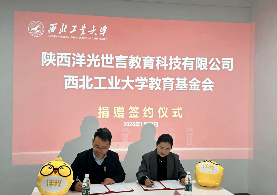 为进一步推进“总师型”拔尖创新人才培养,持续激发学工系统干事创业的内生动力和创新活力,学校设立“西北工业大学铸剑育人基金”,旨在汇聚广大社会资源,支持学校开展铸剑育人工作。1月23日,基金收到洋光教育集团首批捐赠100万元,捐赠签约仪式在友谊校区创新大厦举行。